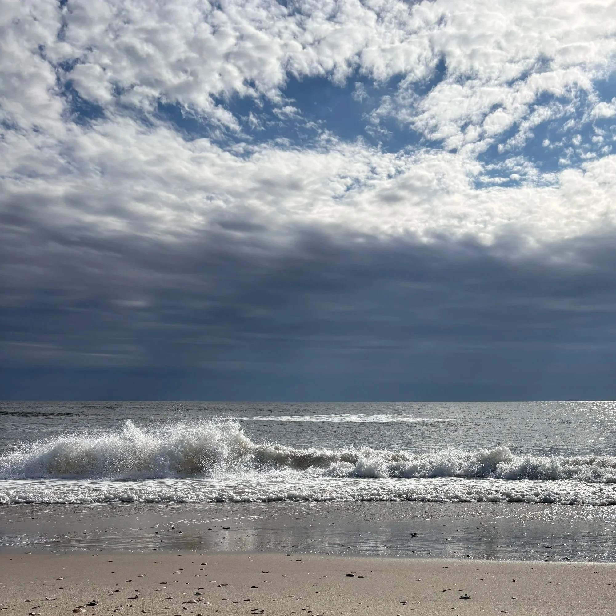 And so this past Sunday, we went to the beach. It was a warm January day, the sun breaking through the clouds from time to time. We sat on the beach, and I looked out. I looked at the horizon where the sky met the sea. Nothing obstructing this view — no buildings, no cars, no ships, no objects. Just water and air for as far as I could see. And I breathed deeply. I felt comforted by the vastness of this space. I listened to the steady rhythm of the waves. I felt the wind on my cheeks, cold, but tempered by the warmth of sun rays shining down.
